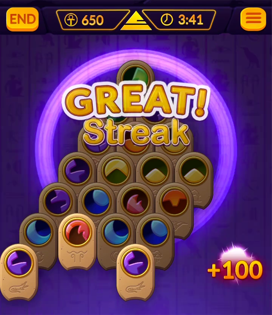 Complete a full pyramid while building up streaks with each match, finishing as quickly as possible to earn bonus points for time remaining and any stones remaining in the Pile.