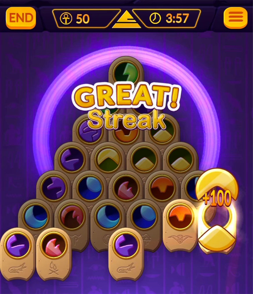 The game starts with a full pyramid of stones. Match stones by dragging them with your finger or tapping