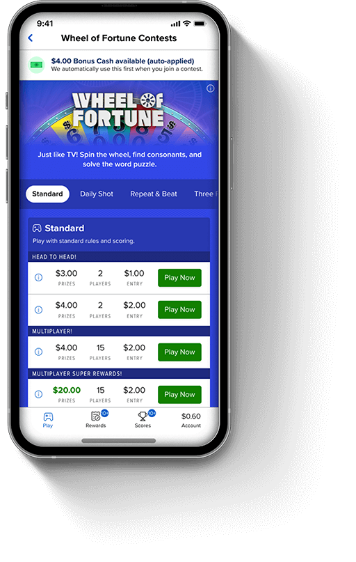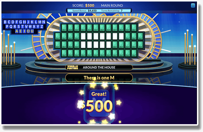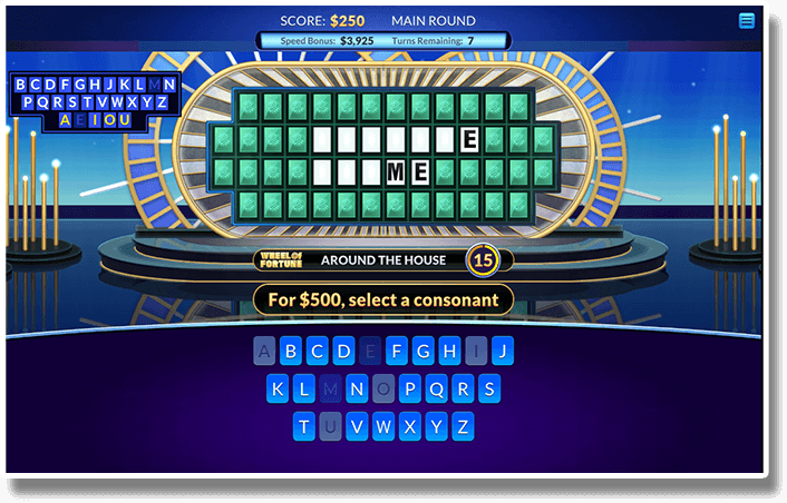 Just like TV. Spin the wheel, find consonants, and solve the word puzzle. There are 2 Rounds: the Main Round and a Bonus Round.