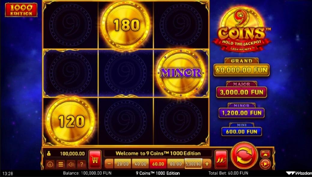 Among Wazdan's slot machines, 9 Coins 1000 Edition stands out for many good reasons. It has the Cash Infinity mechanic, which increases engagement. Not to mention the Grand Jackpot, which can grow to 1000x your stake, which is incredible.