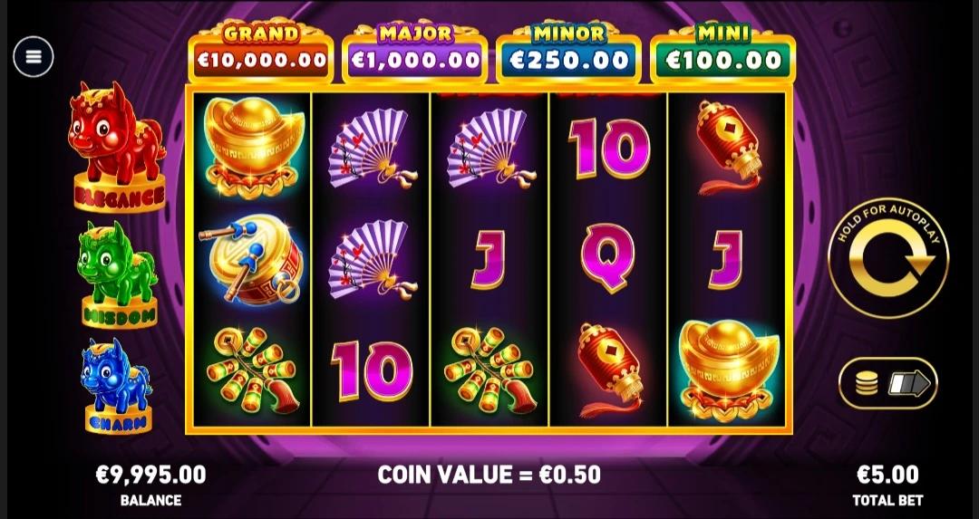 Symbols feature bold colors inspired by Asian culture, tradition, and festive imagery. Highlights and shadows give every symbol a glossy, 3D appearance. The bright hues stand out against the deeper purple backdrop. This contrast helps symbols pop clearly, even during fast spinning moments.