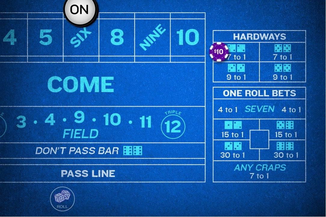 You bet that pairs, like two 4s, will be rolled before either a 7 or the pair value is rolled the “easy” way. For example, a bet on two 4s would lose if a 5 and a 3 are rolled. Payouts vary for each specific pair.