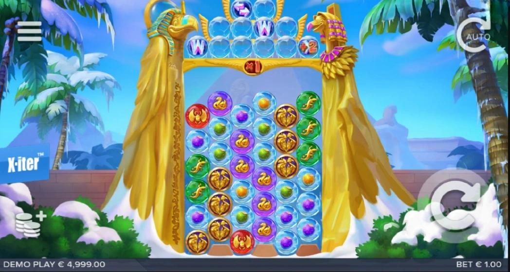 Keep in mind that the Avalanche mechanic activates with every win. Also, the two distinct wild symbols can substitute for any pay symbol to improve or complete a win.
